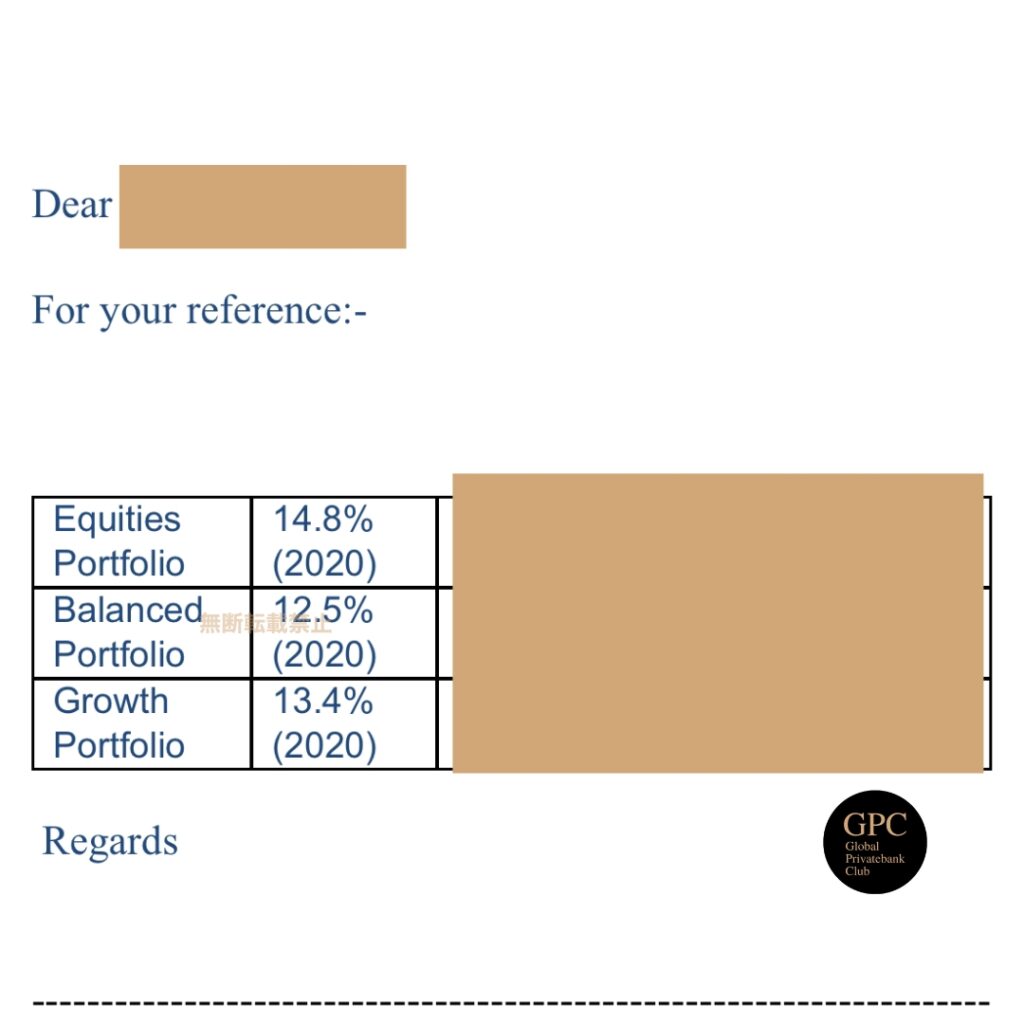 勉強会に先駆けて、今回こちらのページをご覧になられている皆様だけに、海外プライベートバンクの運用パフォーマンスを一部公開します。今回紹介する資料は、弊社でも取り扱いのある某PBの資料です。実際に以下の利回りで、自動運用(運用を完全丸投げ)することができます。
